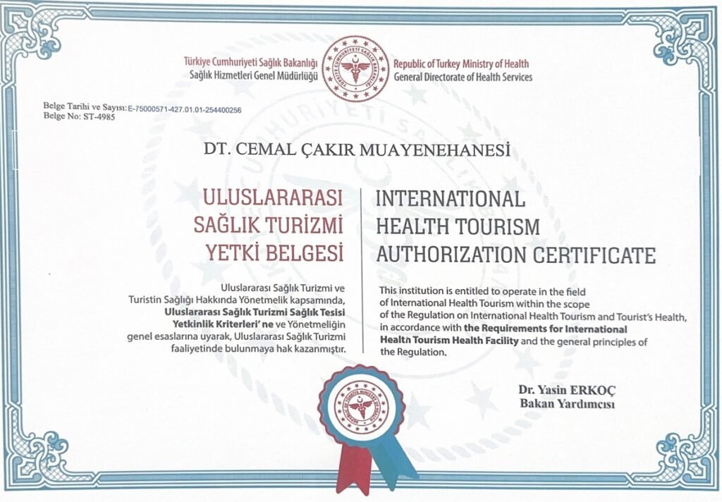 Uluslararası Sağlık Turizmi Yetki Belgesi, Türkiye’de sağlık turizmi faaliyetlerinde bulunmak isteyen hastaneler, klinikler, poliklinikler ve aracı kurumlar için T.C. Sağlık Bakanlığı tarafından verilen resmi bir belgedir.